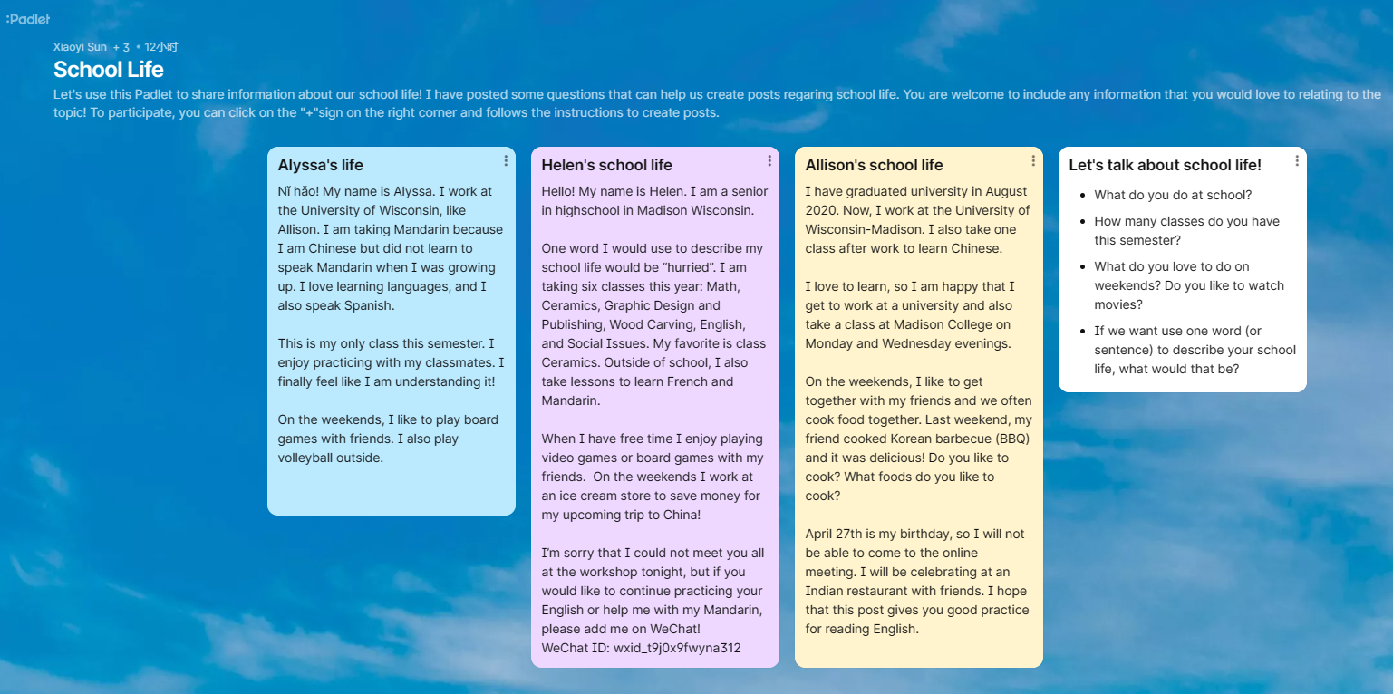 美国学生在Padlet上关于校园主题的分享