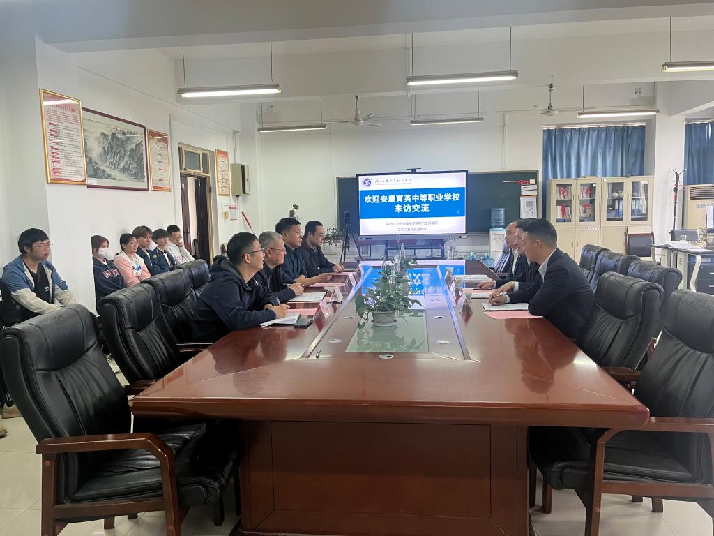 5月9日上午,安康育英中等职业学校来我校电气工程学院考察交流,安康育英中等职业学校校长王本周、副校长周开波、招生就业处主任曹仲超等一行3人,我校电气学院党总支书记韩伟、院长夏东盛、副院长董佳辉、学工办主任赵松等参加此次交流会议。