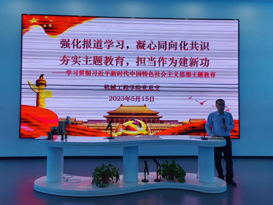 最后,机械学院党总支书记苏宏志强调,全体教师要不断深入学习贯彻习近平新时代中国特色社会主义思想,深刻认识主题教育的重大意义,准确把握主题教育目标任务,把学习党的创新理论贯穿始终,坚持理论联系实际,立足岗位,做好理论学习,认真调查研究,增强能力本领,为机械学院进一步发展和建设取得新的成绩。