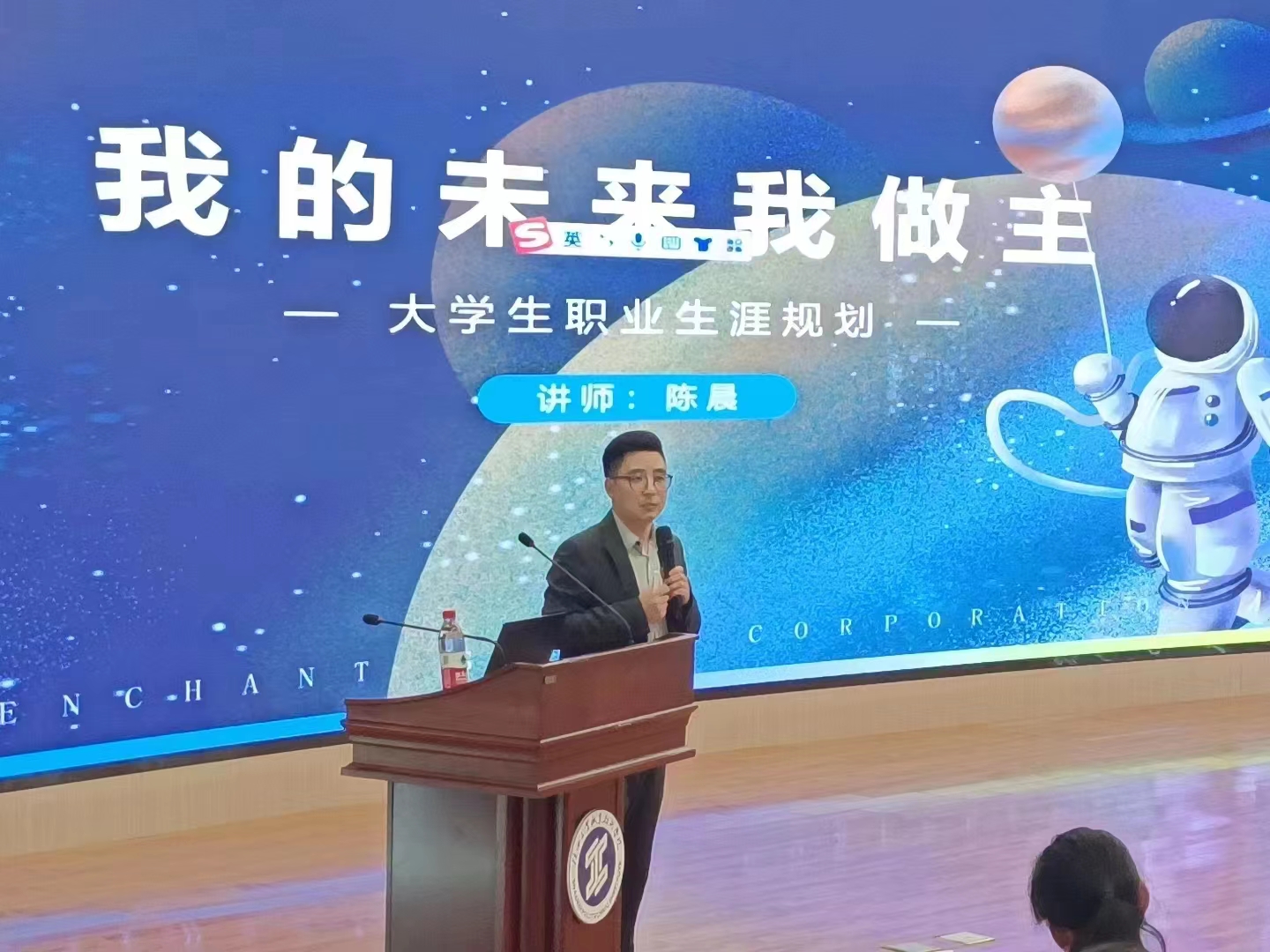 首先,陈晨总监以土建类专业特色为出发点,从“就业求职大数据”“如何实现高质量就业”“就业陪跑计划”三个板块做了“我的未来我做主”主题报告。他带领同学们梳理了职业生涯的涵义、角色的认知、自我探索、职业探索、职业路径等板块内容,引导同学们通过职业生涯了解真实的内心世界,从而对未来规划做到心中有数。
