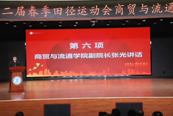 接下来,商贸与流通学院副院长张光讲话,他强调,商贸学院在招生就业、技能大赛等多项工作安排中佳绩频传,充分展现了商贸人积极进取、勇争第一的精神风貌,希望同学们百尺竿头,更进一步。