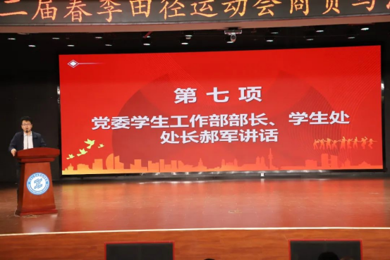 党委工作部部长、学生处处长郝军在讲话中指出:商贸与流通学院在春季田径运动会后组织召开总结表彰大会,体现了商贸与流通学院学生工作有高度,讲情怀;有想法,讲创意;有统筹,讲设计,有总结,讲提升,真正体现了商贸与流通学院“做红心商贸人,干阳光流通事”的专业建设和人才培养价值导向。希望商贸与流通学院全体师生作为第一批在经开田径场上奔跑的主人翁,持续苦练内功,勤奋耕耘,全面发展,希望商贸与流通学院全体师生再接再厉,引领经开,做好示范。