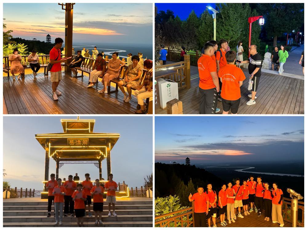 伴着落日余晖,实践团在岳渎亭眺望黄河,观赏渭河入黄的旖旎风光,同学们触景生情,在岳渎亭前深情朗诵了一首《黄河颂》,表达了对母亲河的崇敬。