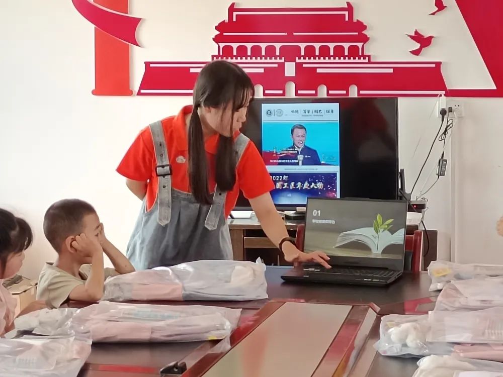 实践团成员李佳怡以“匠心铸就梦想·技能点亮人生”为题,通过分享优秀校友何小虎和邢小颖的励志故事,激起了孩子们对大国工匠的崇敬之情,也引发了孩子们对大学生活的向往。他们一致认为,只有努力学习,学好各项本领,掌握一项技能,才能实现自己的梦想,才能报答父母的养育之恩,才能成为有用之才。