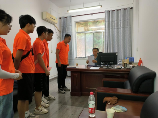 图上为淳化县职教中心的王校长接待实践队,对淳化县职教中心进行介绍