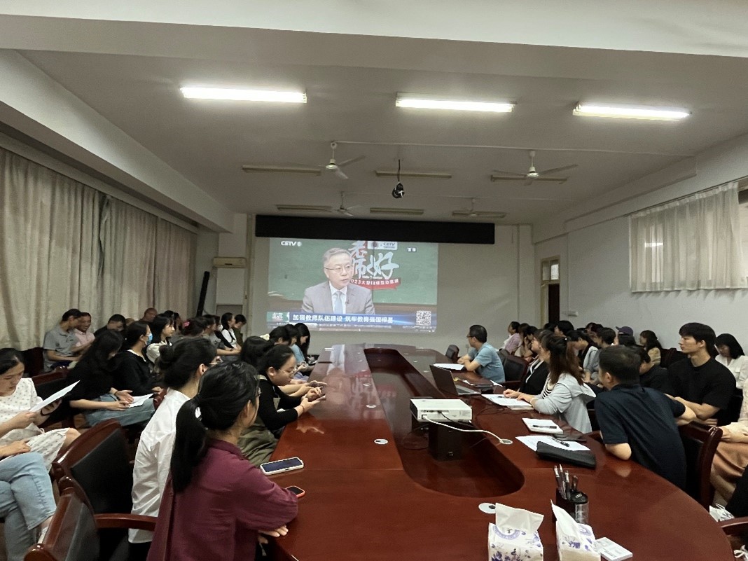在活动中,总支书记苏宏志带领大家学习了《习近平致全国优秀教师代表的信》《中央教育工作领导小组秘书组 中共教育部党组印发通知对教育系统深入学习贯彻习近平总书记教师节重要指示精神作出部署安排》等文件内容,并观看了教育部教师工作司司长任友群谈如何理解“教育家精神”视频。