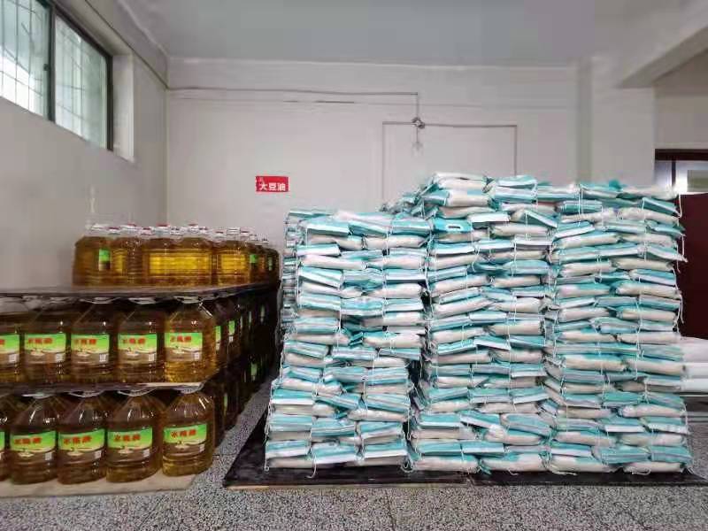 食品储备到位。针对疫情期间市场供给紧张的实际情况,学校盘活一切资源、动员一切力量,通过多渠道采购、接受社会捐赠、加强与供货企业沟通协商等方式,保障食堂、超市、便利店等校园生活必需商品和物资供应有序、价格稳定。一是食堂原材料储备充足。目前学校的米、面、油、肉等大宗食材以及其他的蔬菜、调味品等食材都已储备充足,能够满足封闭管理期间驻校学生和教职工的营养需求;特别是针对学生封闭管理期间,禁止堂食且错峰购餐的实际,提前储备了60万个一次性餐具,确保学生用餐卫生、放心。二是建立了稳定的物资供应保障渠道。现有6个食堂的6个托管经营单位,均有稳定的原材料供应商,确保学校应对长时间应对防控工作的需求。