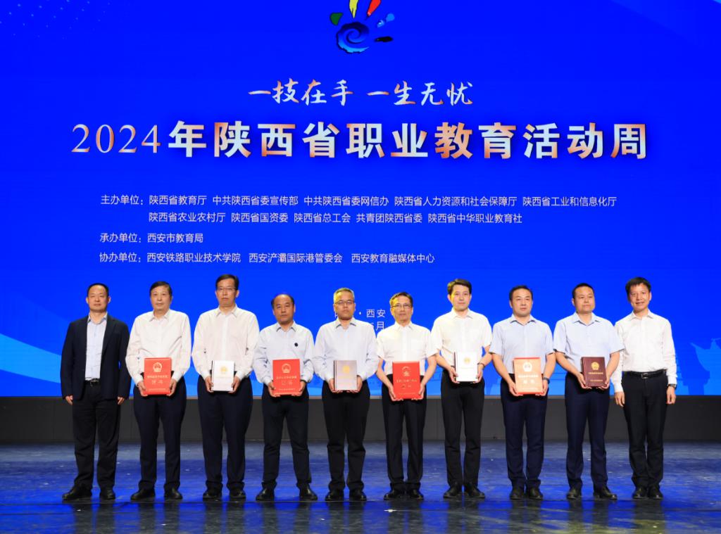 启动仪式设2022年国家职业教育教学成果奖获奖项目颁奖环节,与会领导为获奖院校颁奖。2022年,陕西省共获得2022年国家职业教育教学成果奖21项,我校获一等奖1项、二等奖4项,是陕西省获奖数量最多的高职院校。