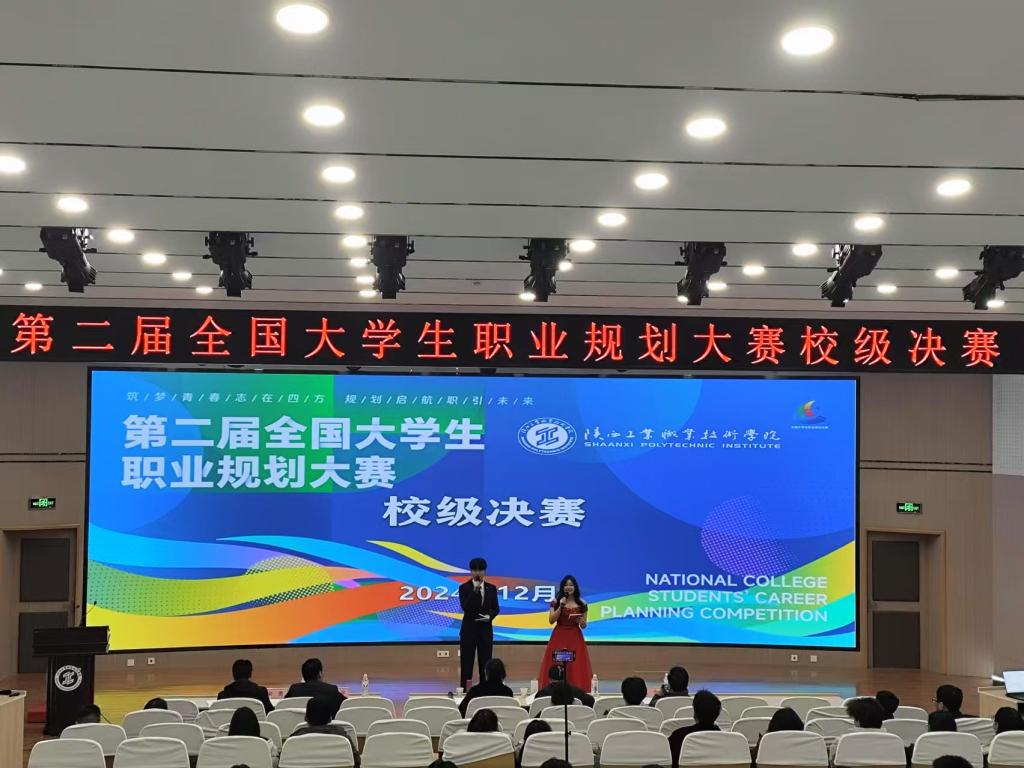 为引导学生全面提升职业生涯规划意识和择业就业能力,促进高质量充分就业,按照陕工院办字〔2024〕34号《关于举办第二届大学生职业规划大赛》安排,12月20日下午,由我校就业指导处主办的第二届大学生职业规划大赛决赛于学术会堂圆满举办。