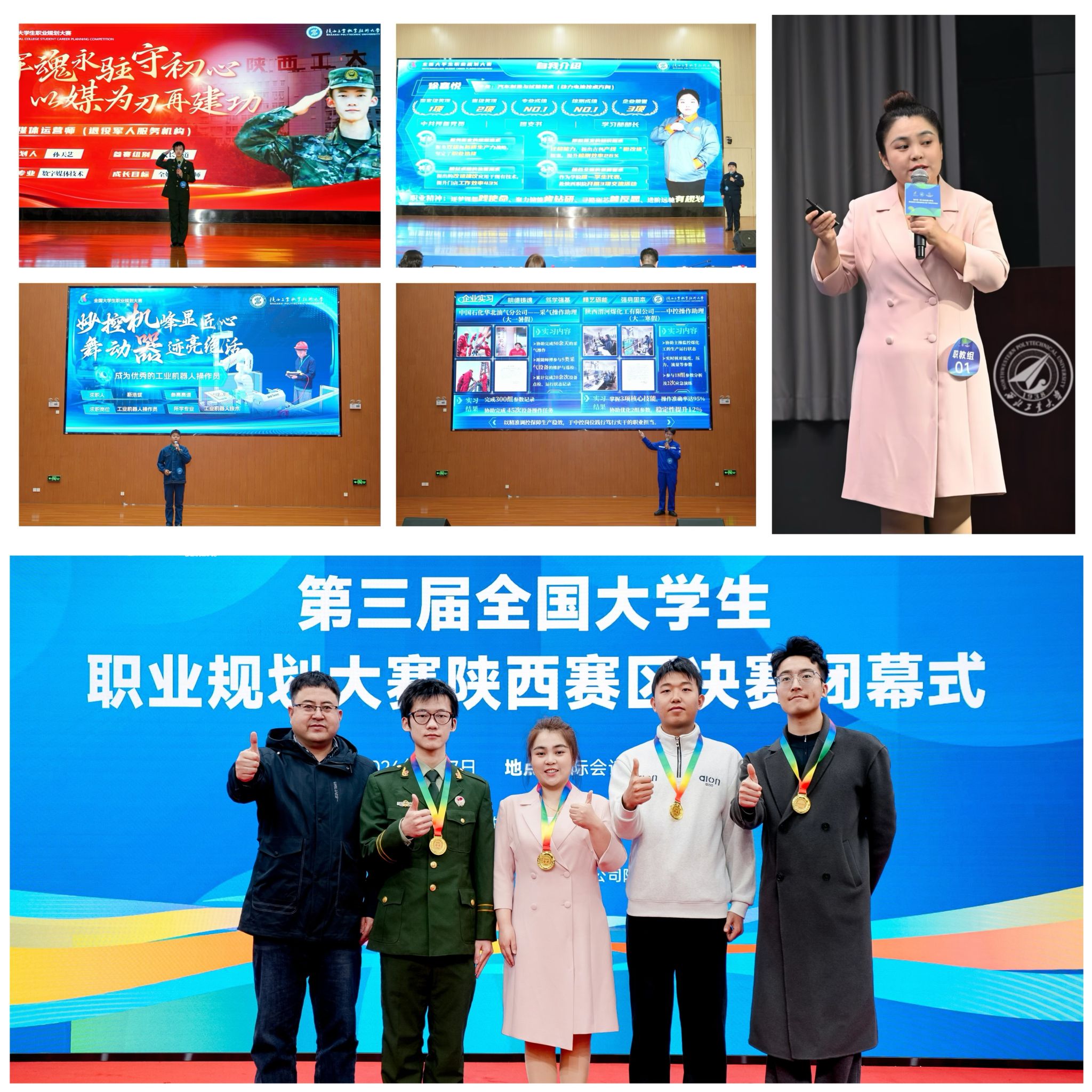 近日,由陕西省教育厅主办,西北工业大学(课程教学赛道)、西安航空职业技术学院(学生赛道职教组)承办的第三届全国大学生职业规划大赛陕西赛区决赛圆满落幕。经过激烈角逐,我校师生表现优异、捷报频传,共斩获课程教学赛道金奖1项、学生赛道金奖2项、学生赛道银奖2项,充分展现了我校在职业生涯教育领域的扎实成效和师生良好的精神风貌。