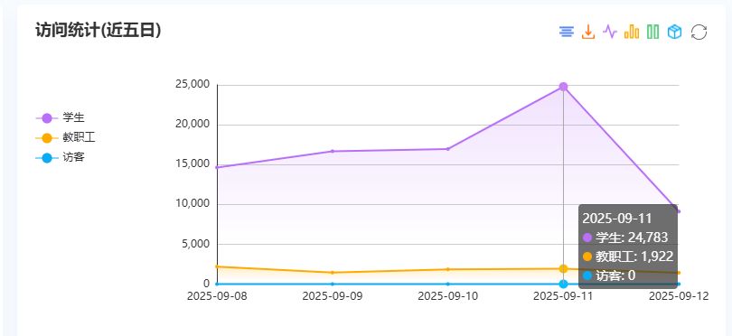 推广数字化平台,提升用户活跃度。为进一步提升“云陕工APP”的下载与使用率,信息化建设中心在迎新现场推出免费“扫码抽奖”活动,奖品包含蓝牙耳机、校服熊、盲盒、文创笔记本等多个奖项,吸引了超过600名新生的积极参与并受到了广大好评。自9月3日新生账户开通以来,APP激活量已达2400户,日均活跃用户持续保持在2500人次以上,有效推动了校园数字化平台的普及应用与智慧校园建设的步伐。
