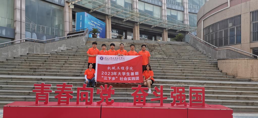为深入贯彻落实习近平总书记关于全面推进乡村振兴、坚定“四个自信”重要讲话精神。陕西工业职业技术学院机械工程学院 “萤火探兴,乡村振兴”暑期社会实践团赴陕西省咸阳市淳化县开展暑期社会实践活动。7月9日,实践团全体成员在渭城校区图书馆前举行出征仪式。
