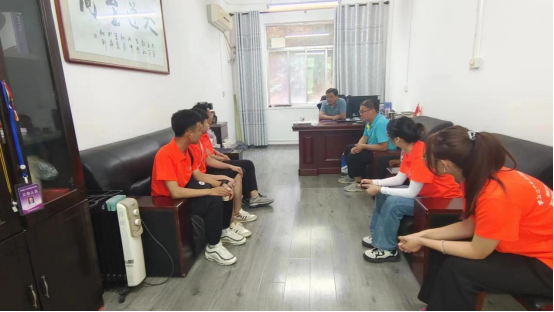 图上为淳化县职教中心的王校长接待实践队,对淳化县职教中心进行介绍
