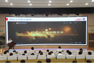 培训会上,雷迪队长通过视频资料展示了国内各高校典型火灾事故案例,从警示篇、防火篇、灭火篇、逃生篇生动地讲解了火灾的危险性和做好消防安全工作的重要性,以及面对火灾时我们应该如何自救等消防基本知识、消防设备器材介绍、学校消防检查重点等内容,尤其就校园存在的火灾安全隐患给在座师生作了详细解读。