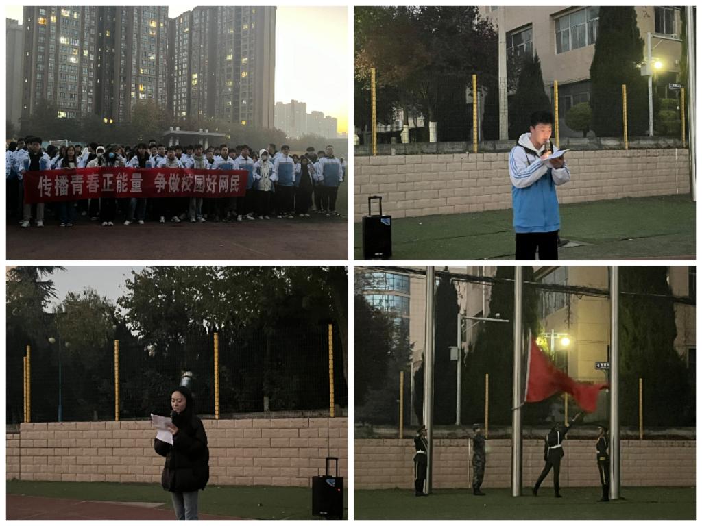 升旗仪式结束后,材料工程学院2023级班主任代表刘佳怡老师作题为《践行网络文明 共筑礼仪之魂》的讲话,教育青年学生正确使用网络工具,依法上网、文明上网、自律上网、安全上网,努力营造一个舒心、优雅、文明的校园学习环境,争做网络时代文明大学生。随后学生代表焊接2302班李子豪同学作了主题演讲,号召同学们要遵守网络道德规范,提高网络素养,避免沉迷于网络游戏和社交媒体,要文明上网,积极关注社会热点,传播正能量,以实际行动展示工院学子的形象,以优异成绩建设美好的校园。