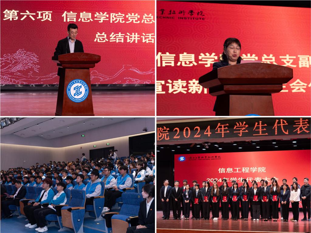 为加强学生干部队伍建设,推动学院学生工作持续稳健发展,10月30日下午,信息工程学院2024年学生代表大会在图文报告厅召开。信息学院党总支书记王伟、党总支副书记郭新玲、学工办主任赵松、全体辅导员、学生干部及学生代表200余人参加。会议由赵松主持。