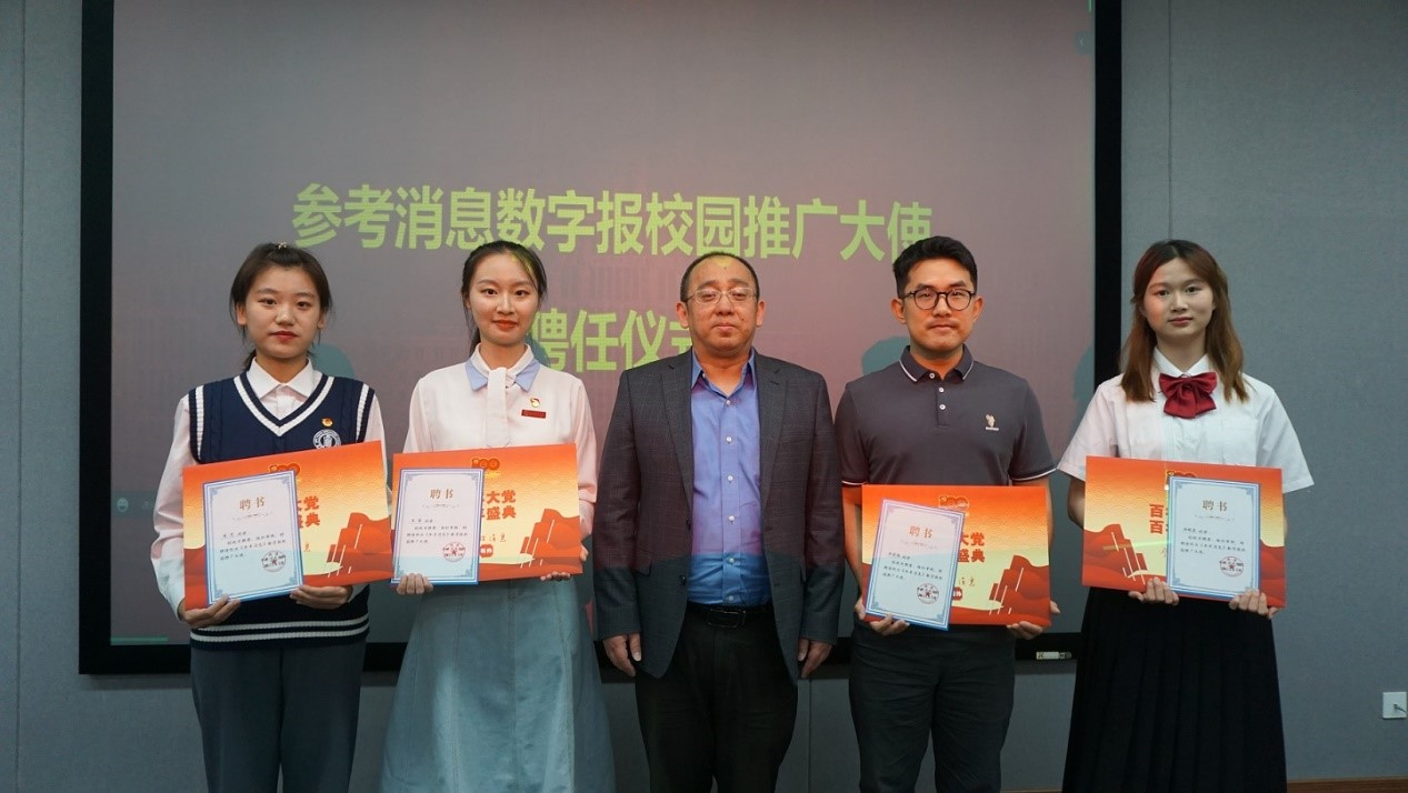 《参考消息》是由新华通讯社主办、参考消息报社编辑出版,于1931年11月7日在江西瑞金创刊,是国内发行量第一、世界排名第五的报纸,拥有日均340万份的发行量。被聘为《参考消息》数字报校园推广大使后,吴煜涵同学表示:要立志做敢于担当民族复兴大任的校园推广大使,让更多同学了解《参考消息》,利用课余时间认真学习、阅读时事期刊,了解党的光辉奋斗史,从而更加珍惜我们现在的美好生活,坚定正确的思想方向,在思想上和党组织保持高度一致。