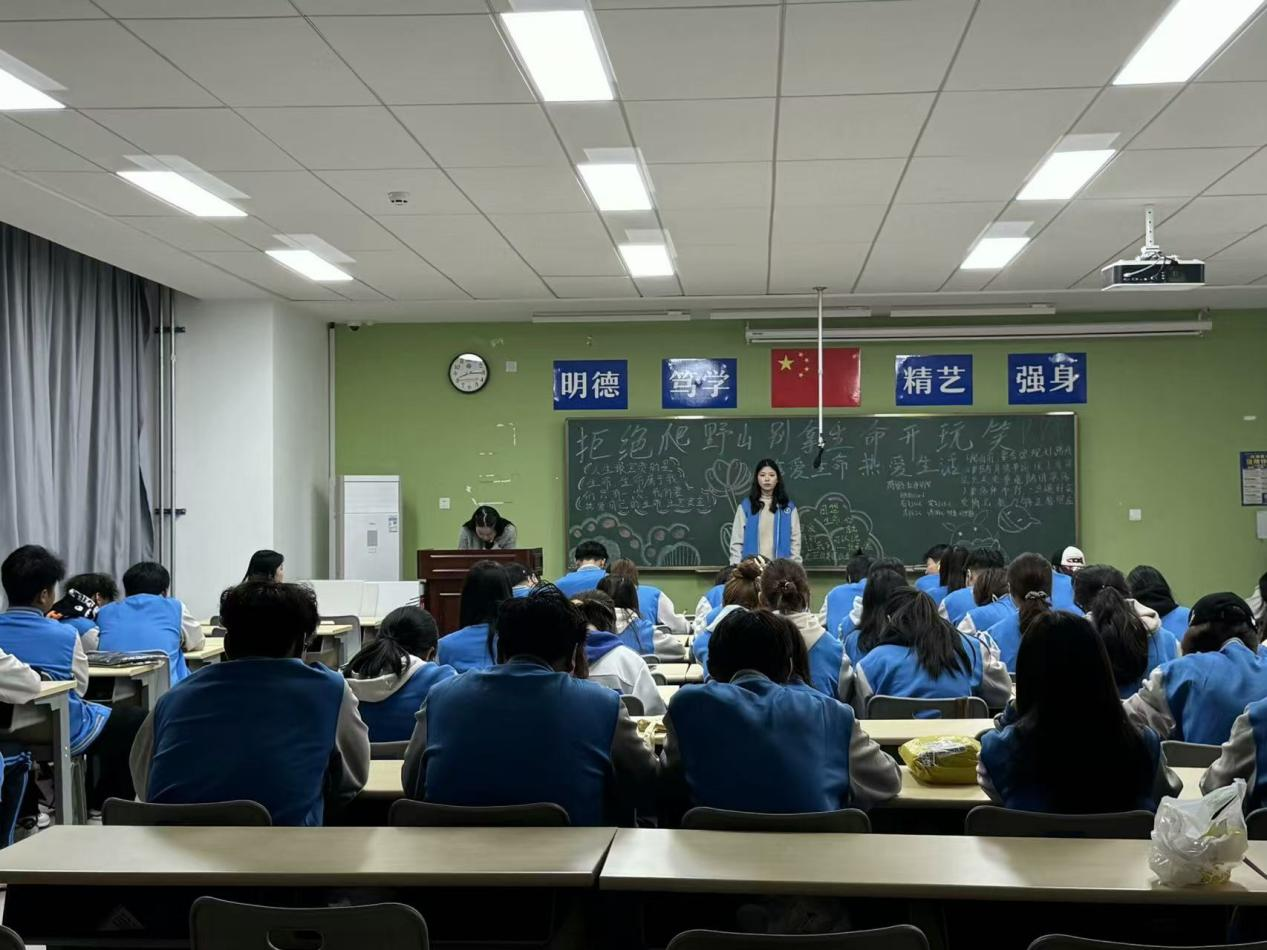 首先各班班主任通过一段震撼人心的视频,向学生们展示了近年来因擅自爬野山而发生的意外事故,包括迷路、受伤甚至失去生命的悲惨案例。这些真实的故事迅速吸引了学生们的注意力,使他们深刻认识到户外探险并非儿戏,必须时刻保持警惕,严格遵守安全规定。紧接着,各班班主任详细介绍了户外探险的基本安全原则,包括规划行程、天气判断、装备准备等关键要素,并特别强调了遵守景区规定、不擅自进入未开发区域的重要性,以及遇到紧急情况时的自救与求救方法。最后各班开始进行分组讨论,同学们结合个人经历或所见所闻,分享对野山攀爬危险性的认识,以及如何提高自我保护能力的想法。此外,各班级还准备了笔记本,用于记录班会中的重点内容和同学们的心得体会,确保活动成果得以巩固和传承。