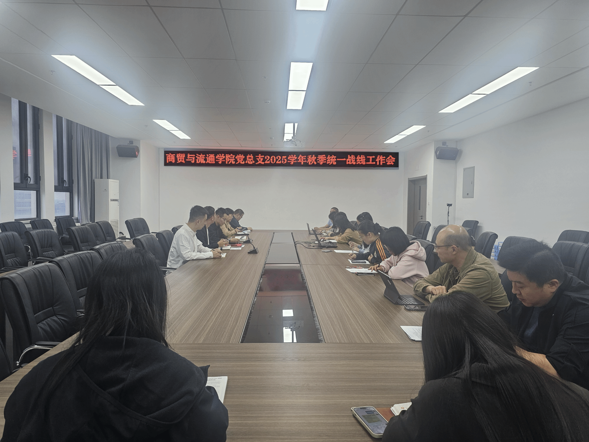 为深入学习贯彻习近平总书记关于做好新时代党的统一战线工作的重要思想,进一步强化教师队伍思想政治建设,9月22日,商贸与流通学院党总支组织召开“凝聚统战力量 赋能学院发展”2025学年秋季统一战线工作会。学院党总支全体委员、各支部书记、支委及各教研室主任参会,会议由商贸学院党总支副书记、副院长张光同志主持。