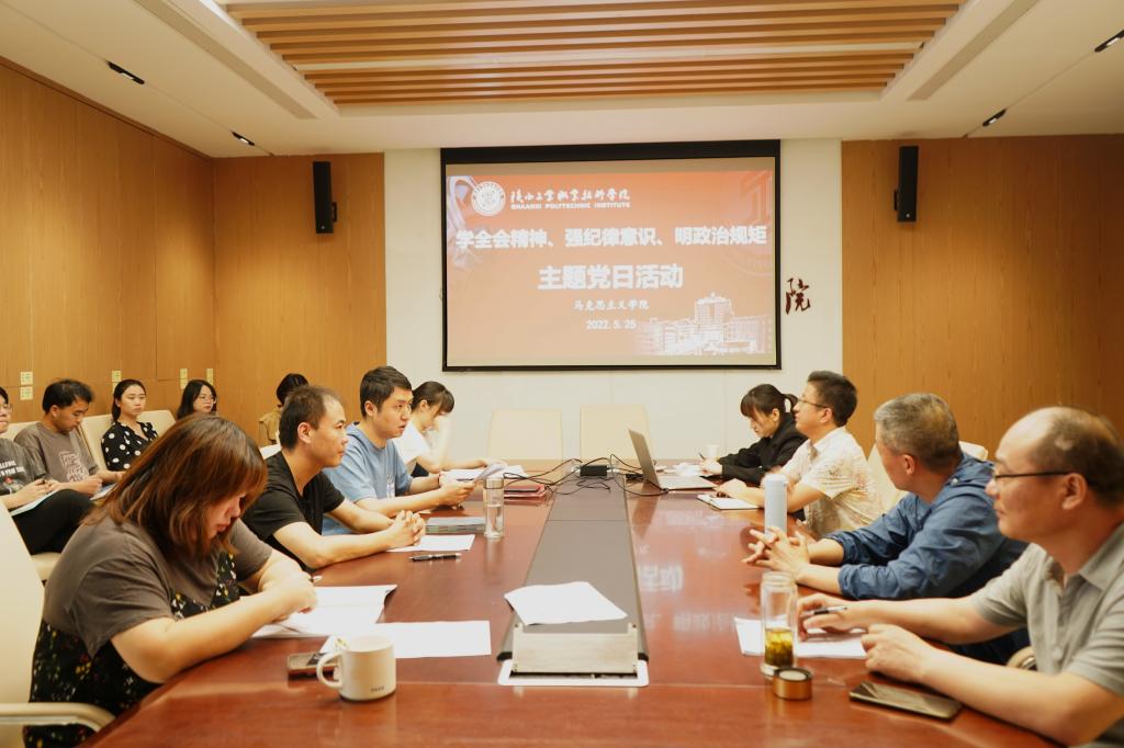 为深入贯彻落实中央纪委和省纪委六次全会精神,凝聚人心共识,切实推动各项工作高质量发展,5月25日下午,马克思主义学院党总支组织全体党员在学院办公室举行了“学全会精神、强纪律意识、明政治规矩”主题党日活动,活动由党支部书记王辉主持。